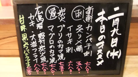 本日のおすすめ。広島産カキ殻付炭火焼(780円)。