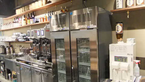 グラスを冷やす冷蔵庫も目立つように置かれてあって、酒好きの人は、特に暑い夏になると駆け込みたくなるような雰囲気づくりがなされている。おいしいお酒を飲ませる設備投資では斬新な店になっている。