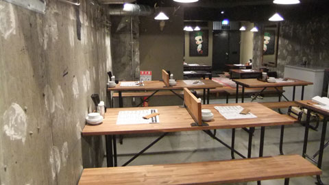デザインは双方のアイデアを出し合って決めるが、設計は際の関連会社ファーストキワ・プランニングが担当している。大衆食堂のような内装で、コンクリートの壁に山の標高を表すような落書きがしてあるのが面白い。
